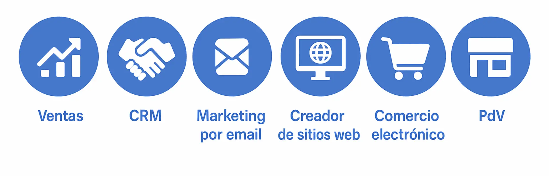 El módulo de Ventas funciona de forma nativa con CRM, Inventario, Facturación y Comercio Electrónico, lo que garantiza un flujo de información fluido y una experiencia del cliente perfecta.