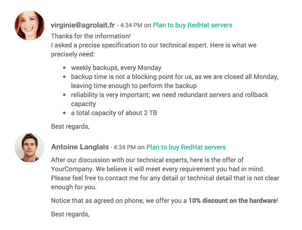 Reciba alertas personalizadas para actividades relevantes, comuníquese por correo electrónico directamente desde las cotizaciones y mantenga automáticamente registros completos de sus operaciones.