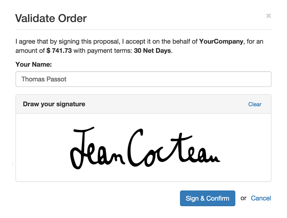 Convierta sus presupuestos en pedidos de venta con un solo clic o permita que sus clientes firmen con una simple firma electrónica.
